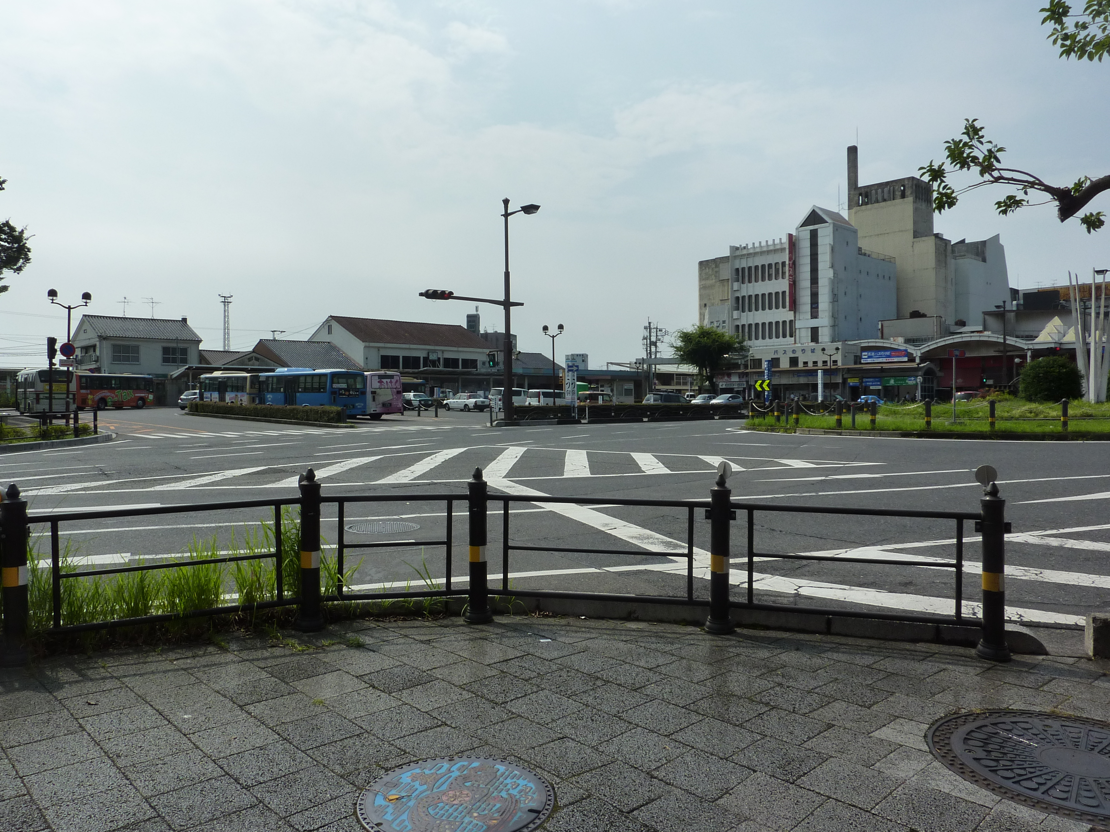 No train ride for us that day. Back outside this is the view of Iwakuni as you leave the station. Note yellow rumble strip again.