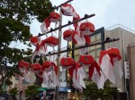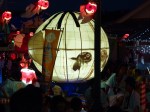 Then the floats came by again. As they paraded by, there was a Japanese drumming group who kept a strong rhythmic beat and an announcer chanting something. The fun, crazy part was when each float got to the main intersection there seemed to be a competition to see who could spin their float around the fastest and the longest and still keep it in the center of the intersection.