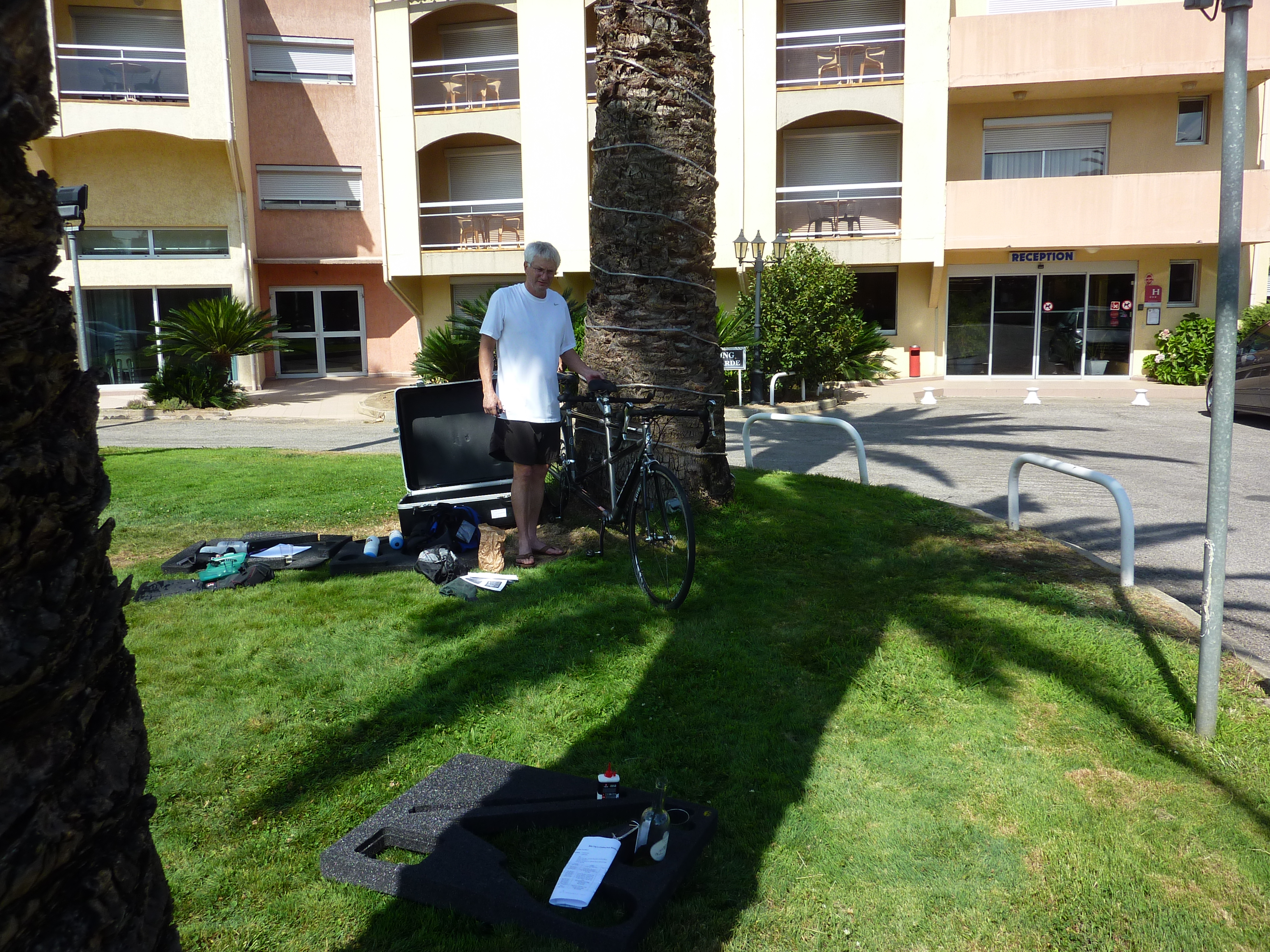 Then we spent the next several hours assembling our bike, drinking wine, and eating bread, cheese and fresh fruit all from the little market and all very local.
