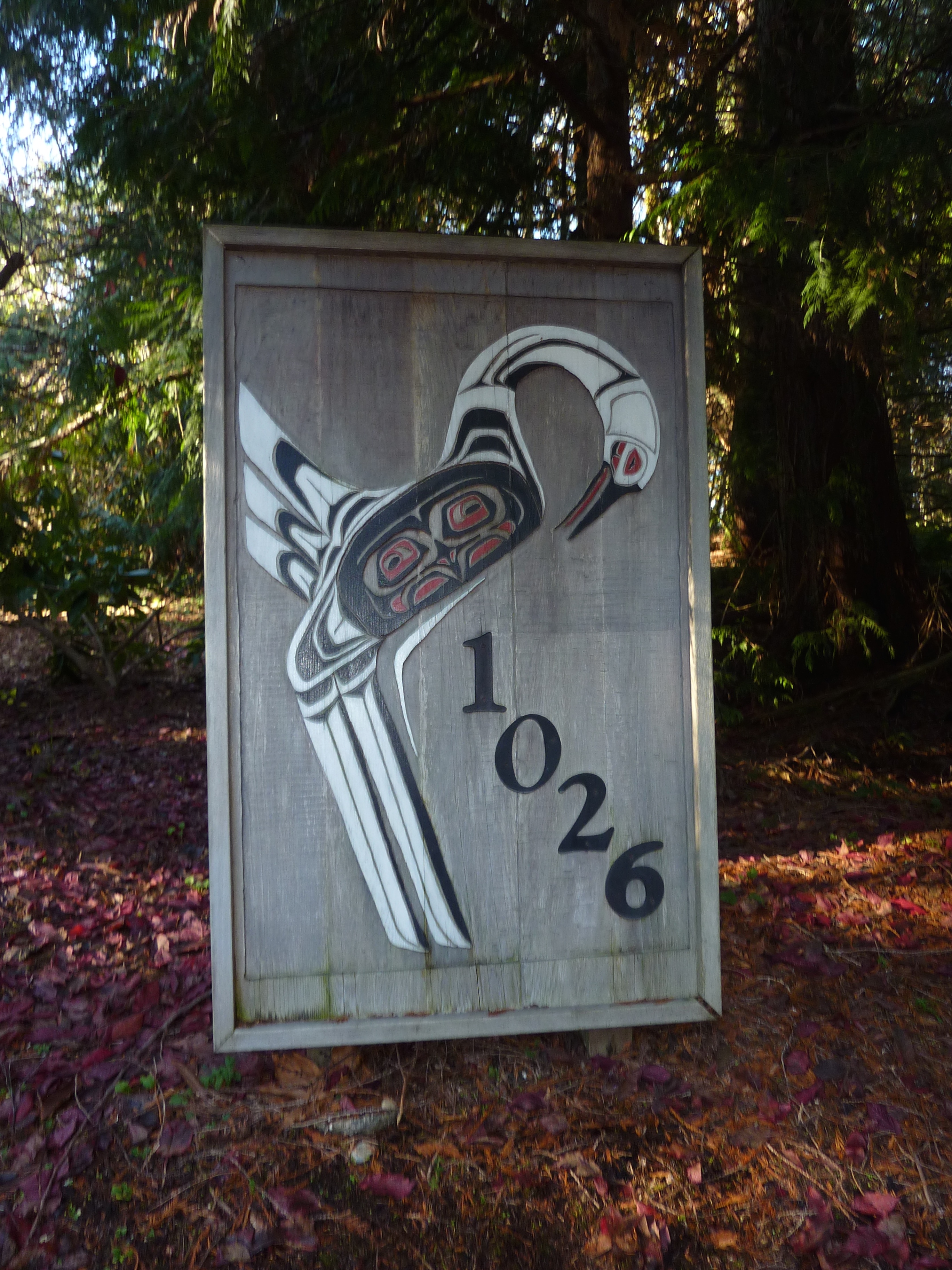 Aside from visiting friends here in Olympia, I had one more goal to accomplish. There is a sign here that I’ve always been attracted to. It’s a wood carving of a swan in the Northwest Native American style. It is at the home of Jerry Swan. And Swan is a family name of mine. It was my paternal grandmother’s maiden name and my father’s middle name. (And, my niece Rebecca’s middle name.) So it’s kind of special and since we spent so much time in the Northwest I really liked the artwork.