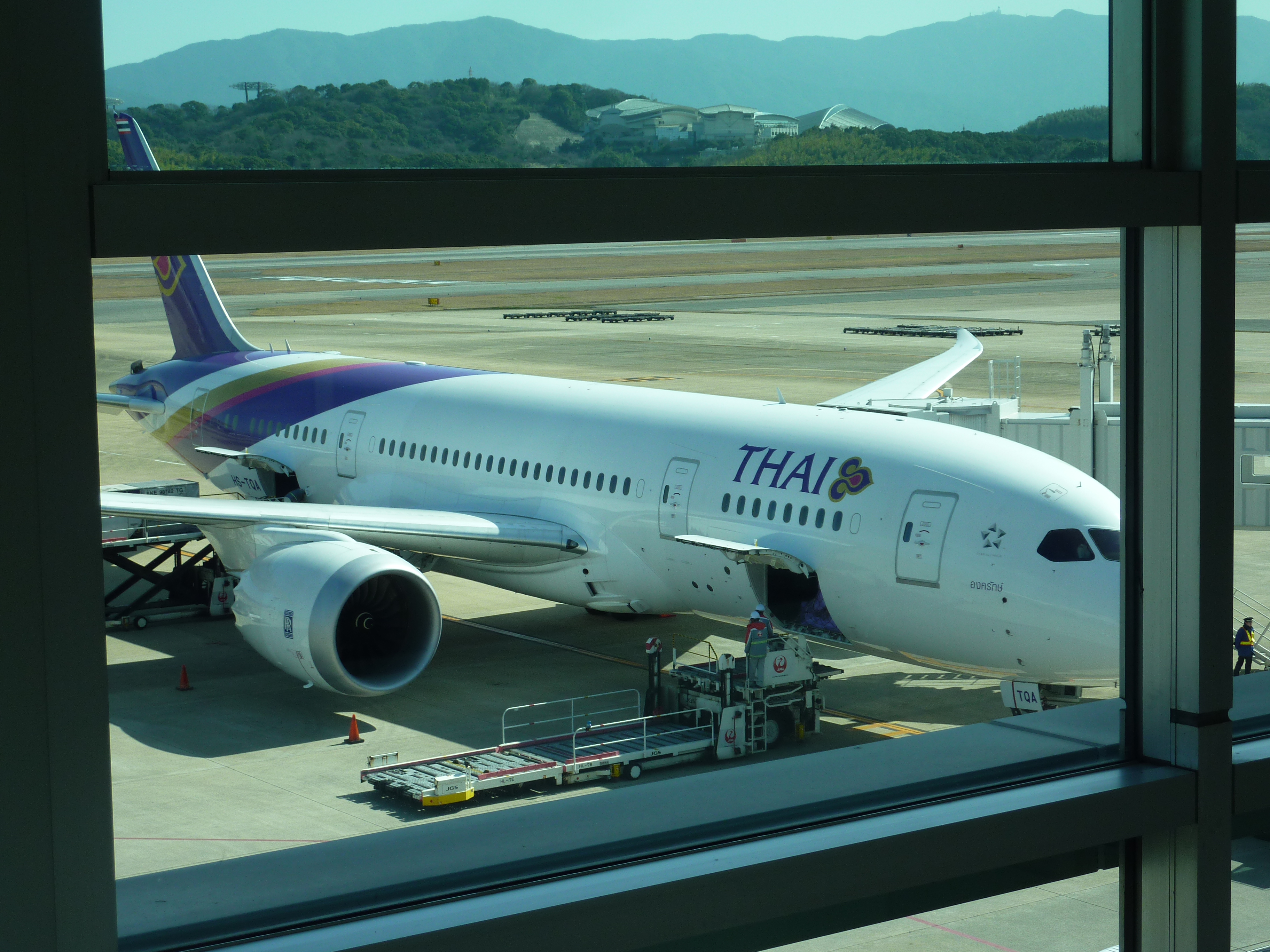 After a great night’s sleep in our little bed in our little room with no bad dreams of fish floating around in my tummy we retraced our steps back to the train terminal and out the other side to catch a taxi to the International Terminal.  We had plenty of time to have a nice breakfast of eggs, ham and toast before we boarded our flight on Thai Airlines to Bangkok.