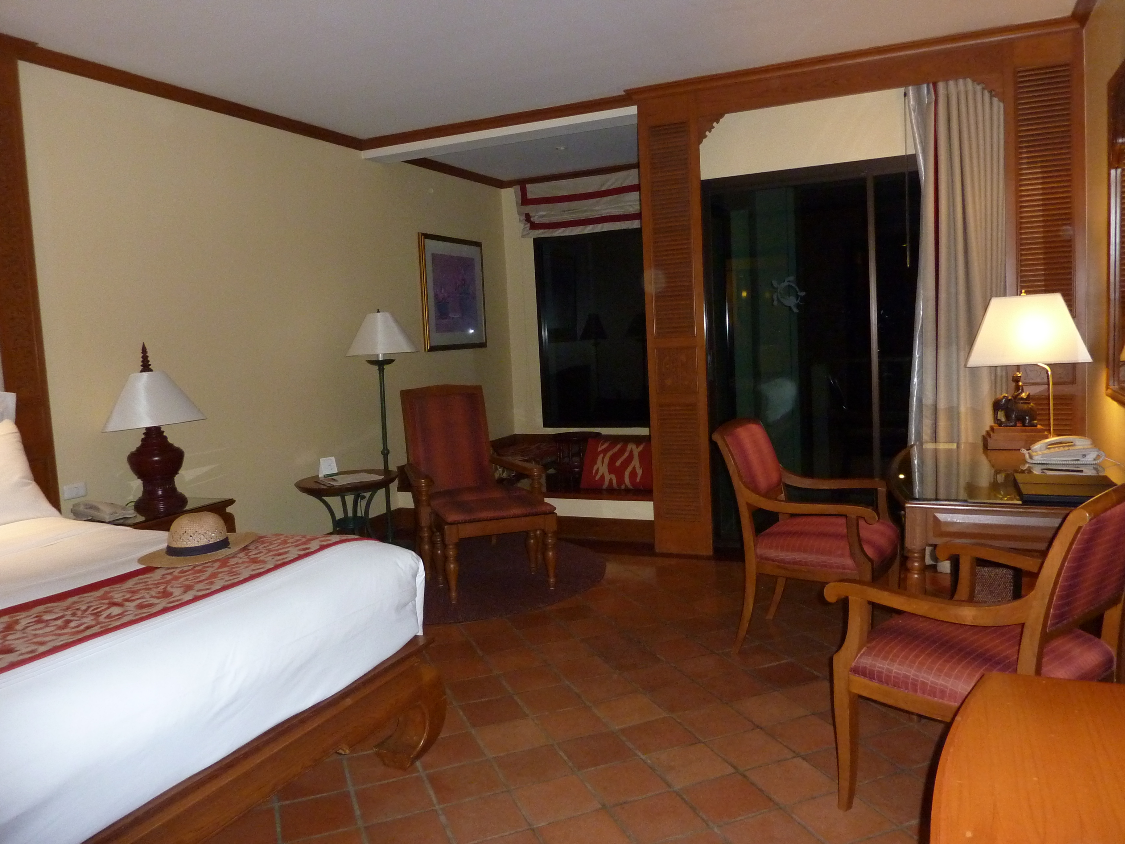 After about a 30 minute taxi ride to our hotel, we landed at the JW Marriott Phuket.     Wow     How fancy   So peaceful   It was around 1900 and very dark.   An open  breezeway with a big infinity pool.  As we checked in we were treated to neatly wrapped cold washcloths on a tray with orchids and glasses of ice cold tea.