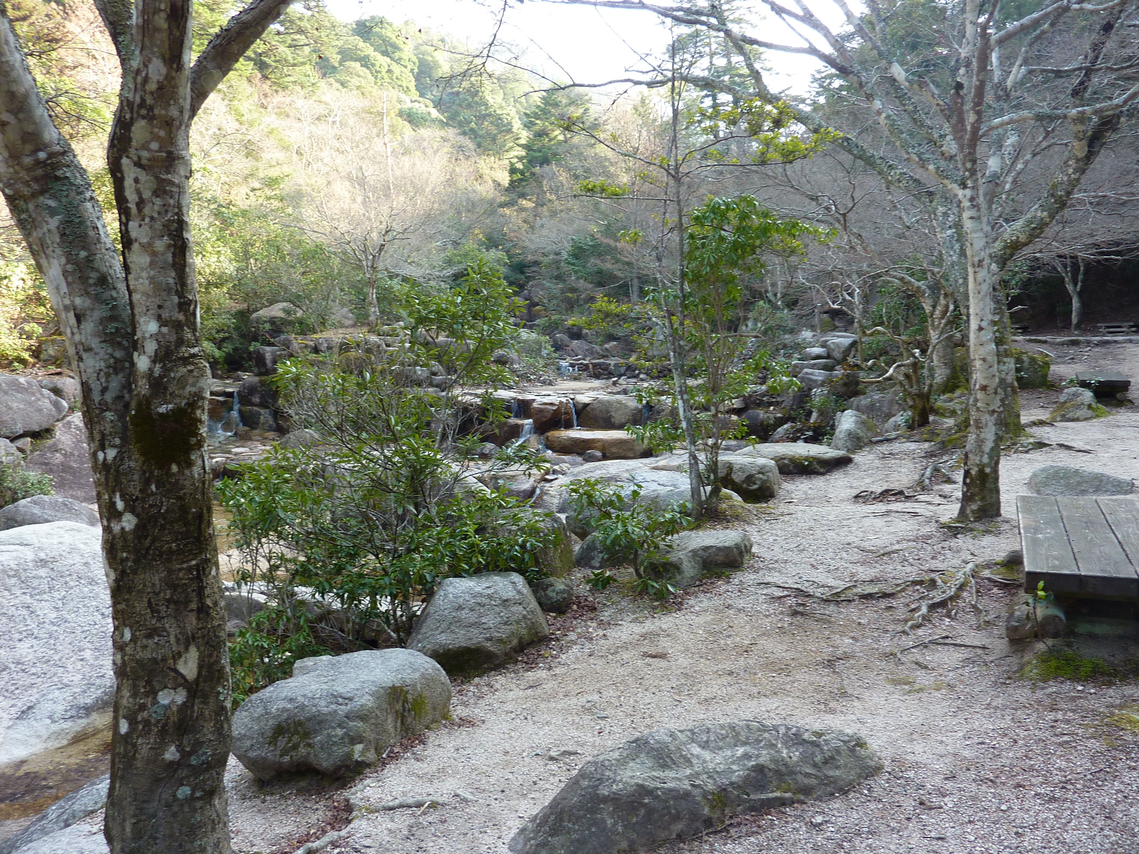 As we near the bottom of the mountain we learn of a great storm (one of many over the years) that caused a lot of damage to the town below and in 2005 an erosion control project was established “in the Japanese garden style.” “Rocks were strategically placed in streams to encourage the water to flow in certain directions, creating scenes that look more like paintings than nature itself. The water from Momijidani stream flows perfectly down a manicured stream bed and shimmies over a stone wall. The stone wall has evenly spaced troughs of predetermined widths in it to create pleasing water flows” according to Amy Chavez.