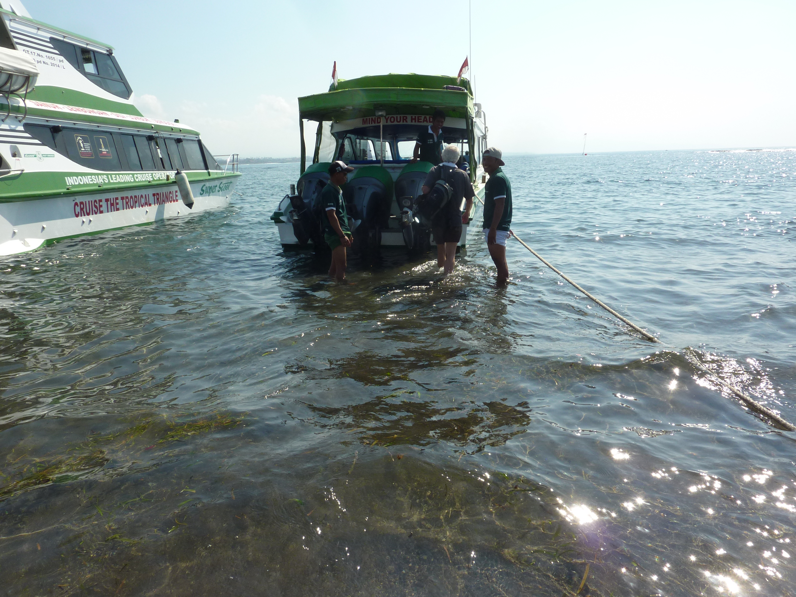 Thirty minutes later we’re pulling up to Nusa Lembongan, an island due east of Sanur where some people got off and others got on. Then off to Gili T…