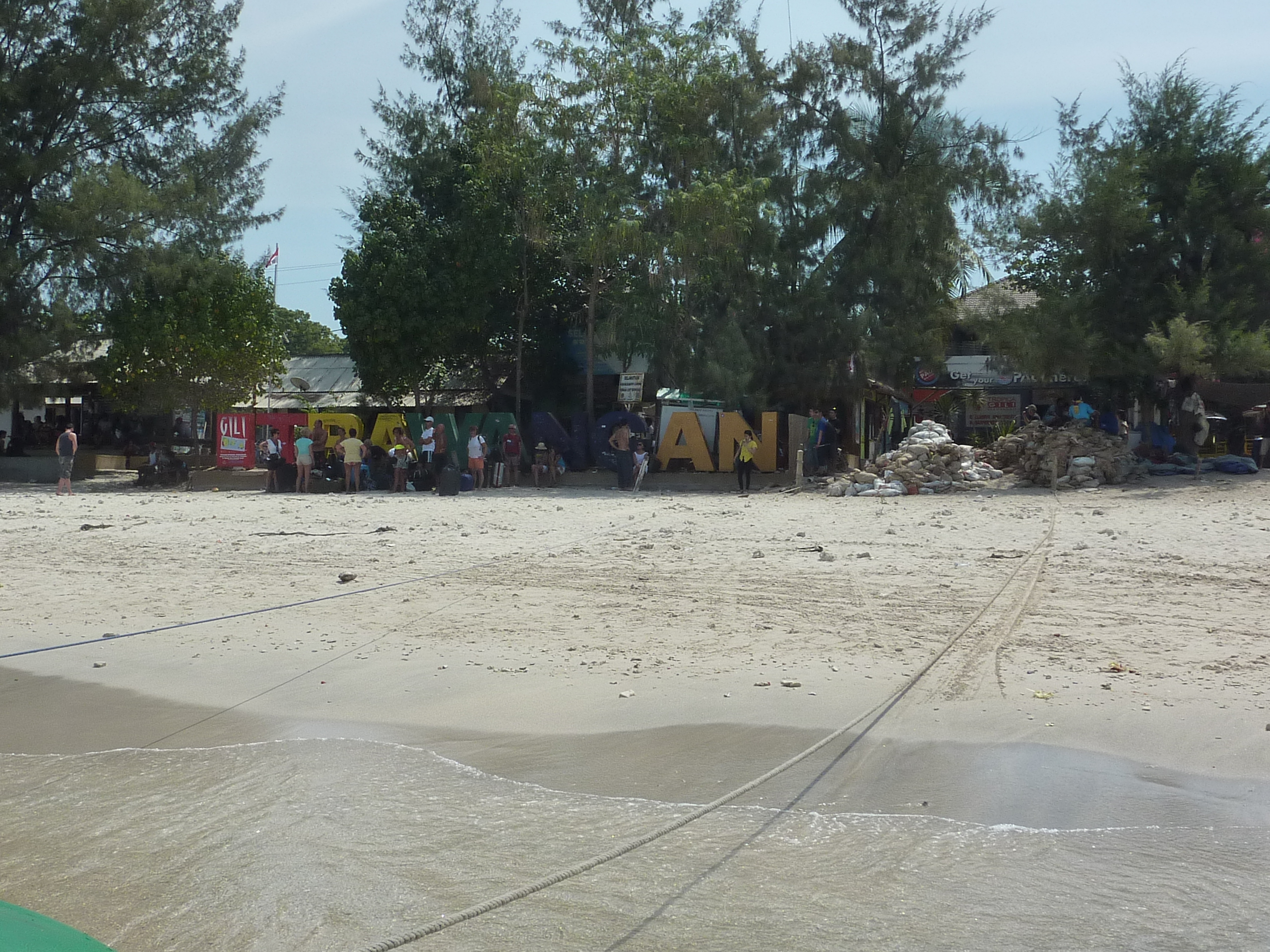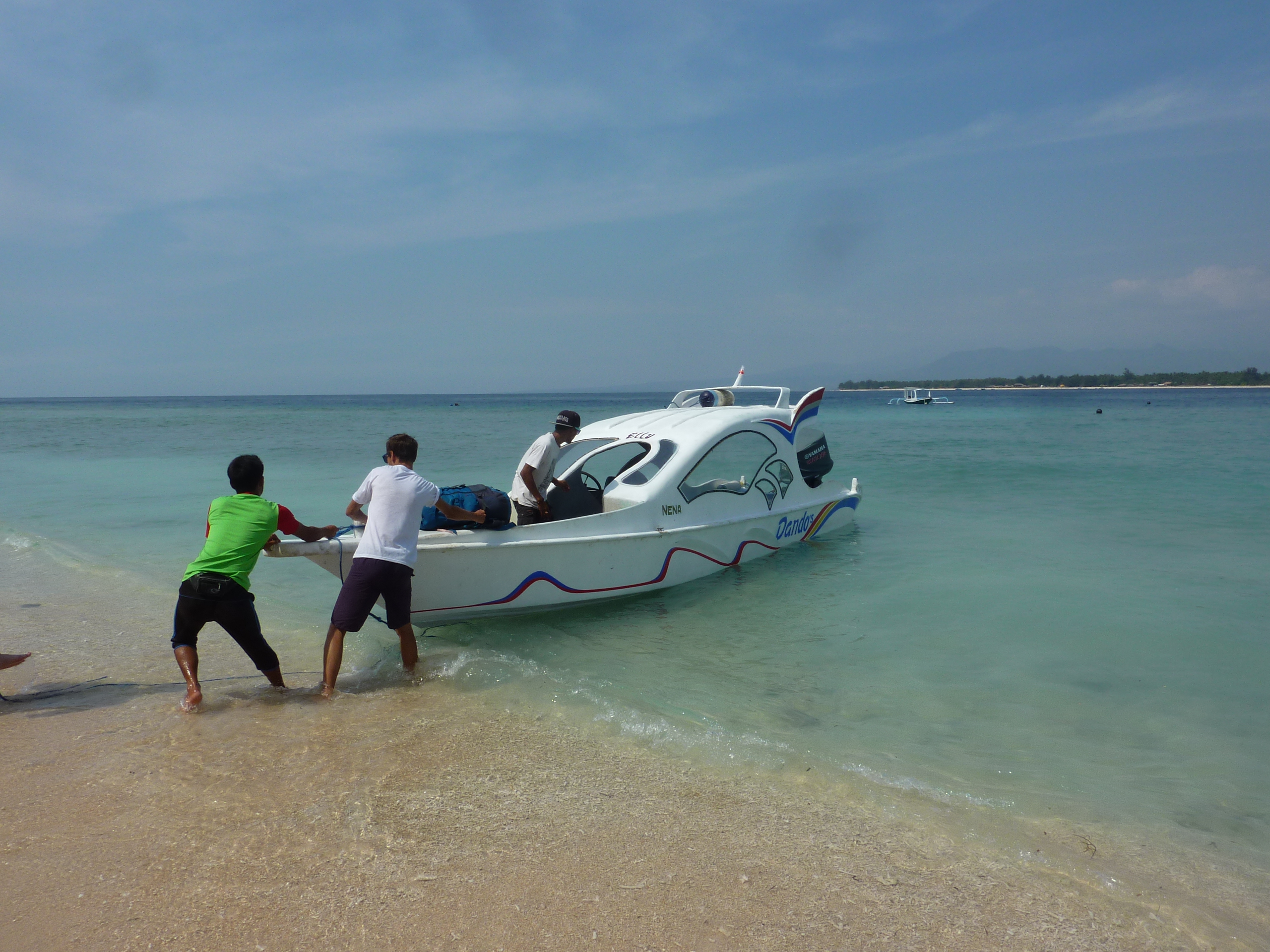 Eventually the Gili Meno gang was told to get off and wait in the sand. After awhile a Gili Meno boat was called. Eventually we were picked up by this fast little boat and zipped over to Gili Meno by some hot shot driver.
