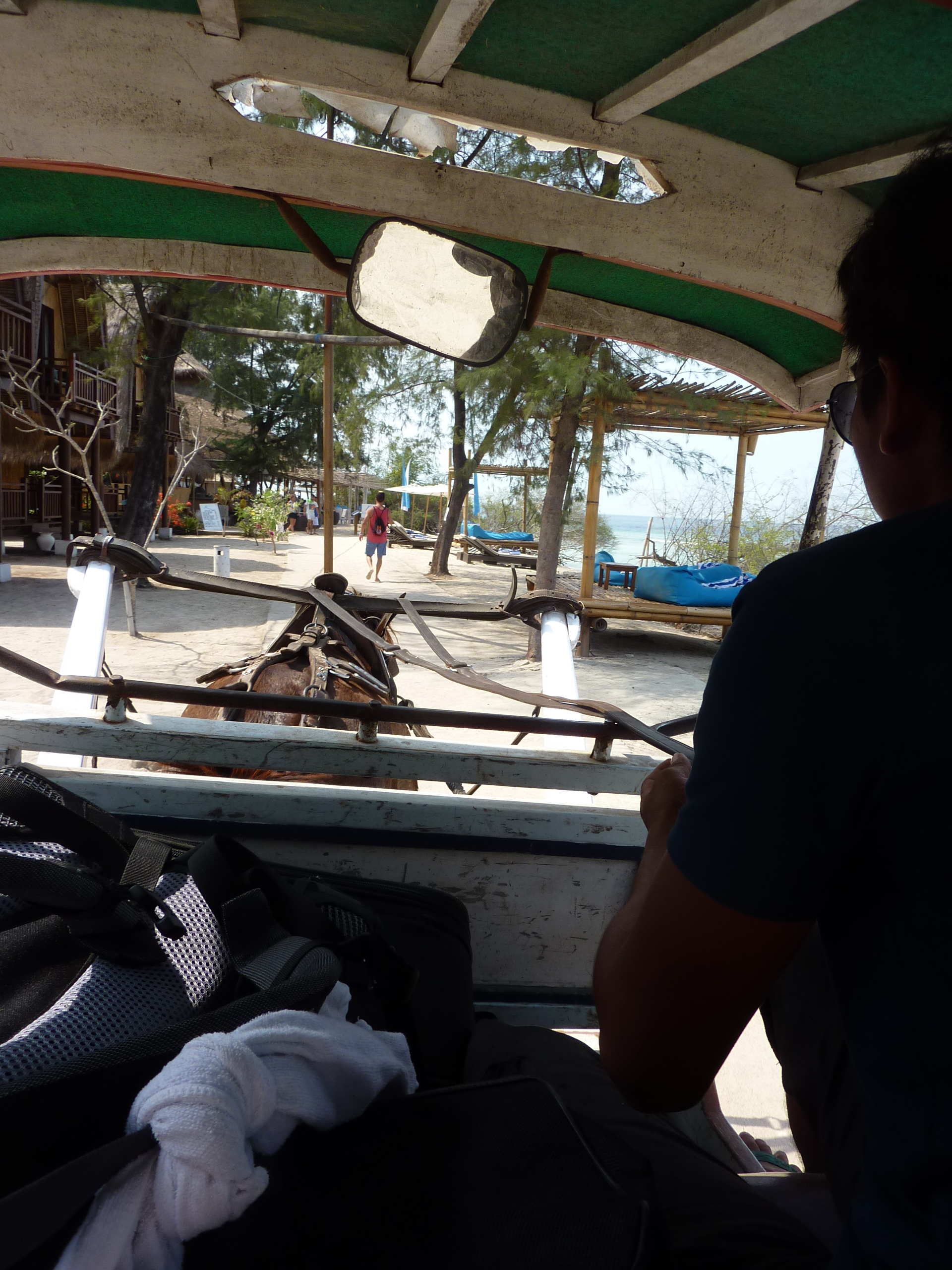 After wading ashore with our bags, we hopped into this little cart (no cars or scooters here)