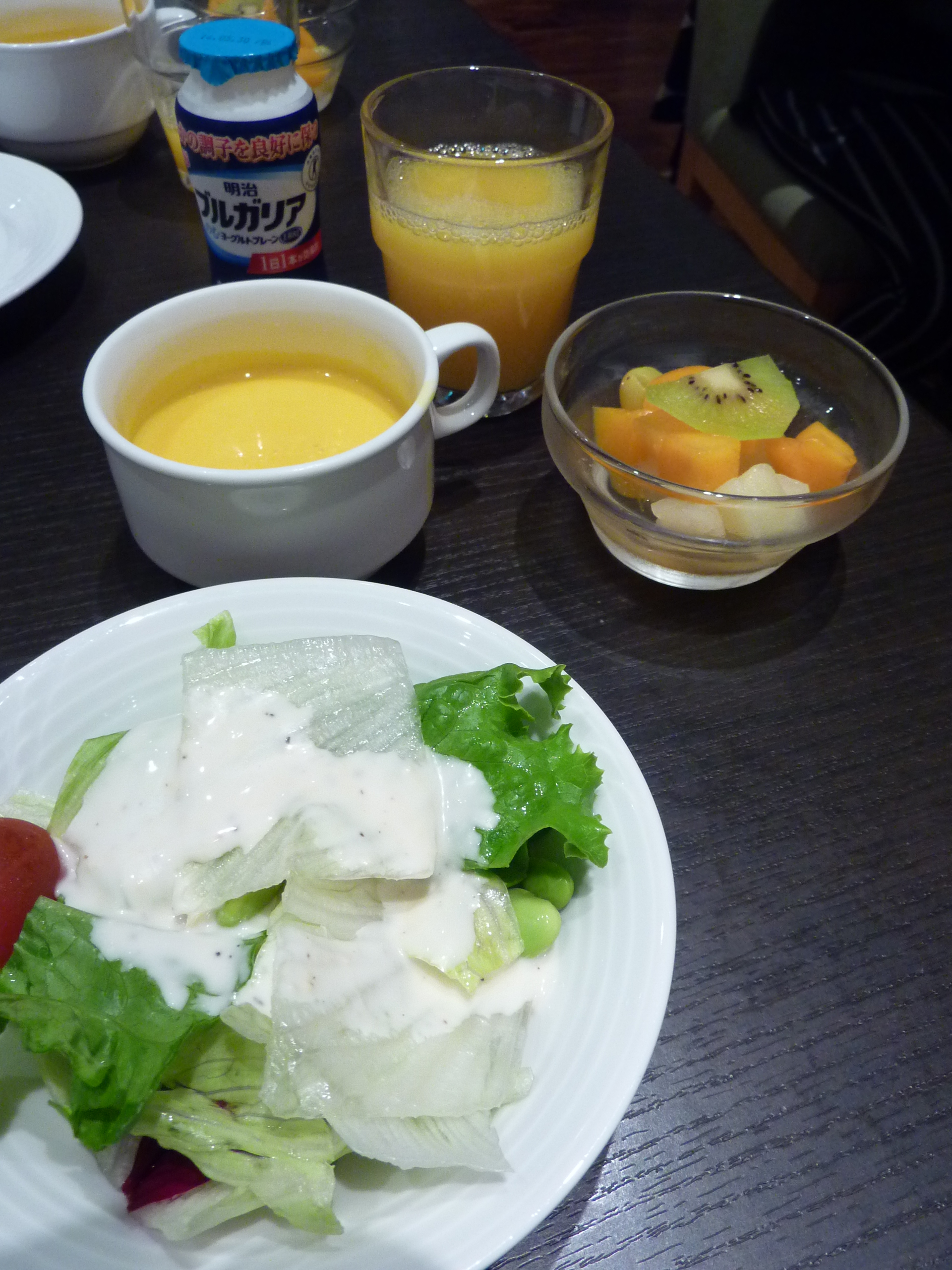 As part of the package price for our room we had a a choice of five breakfast options:  Japanese & Western Buffet, American Breakfast, Japanese Breakfast, Chinese Buffet, and Japanese & Western Breakfast.  Here’s Japan’s version of the American breakfast.