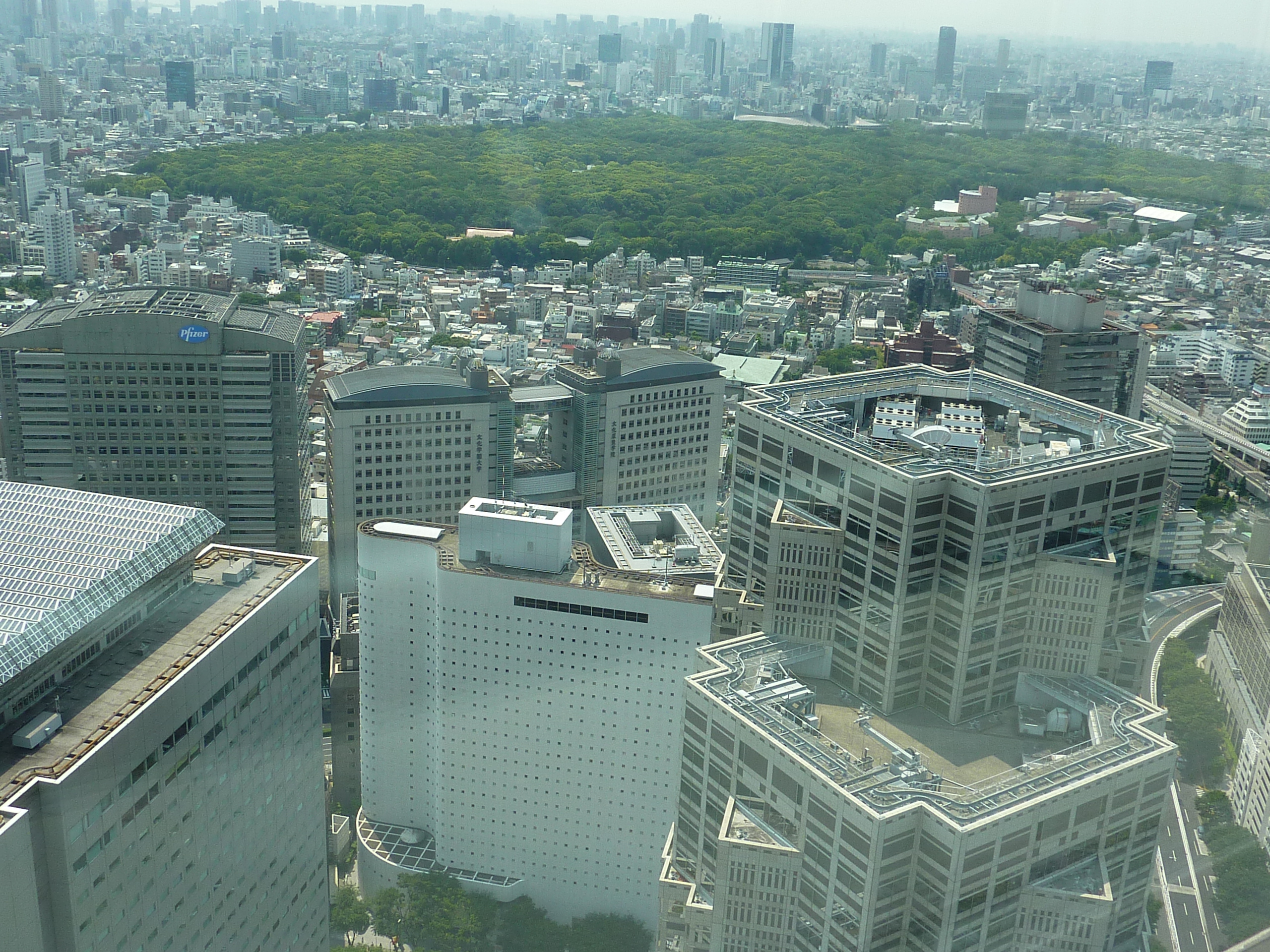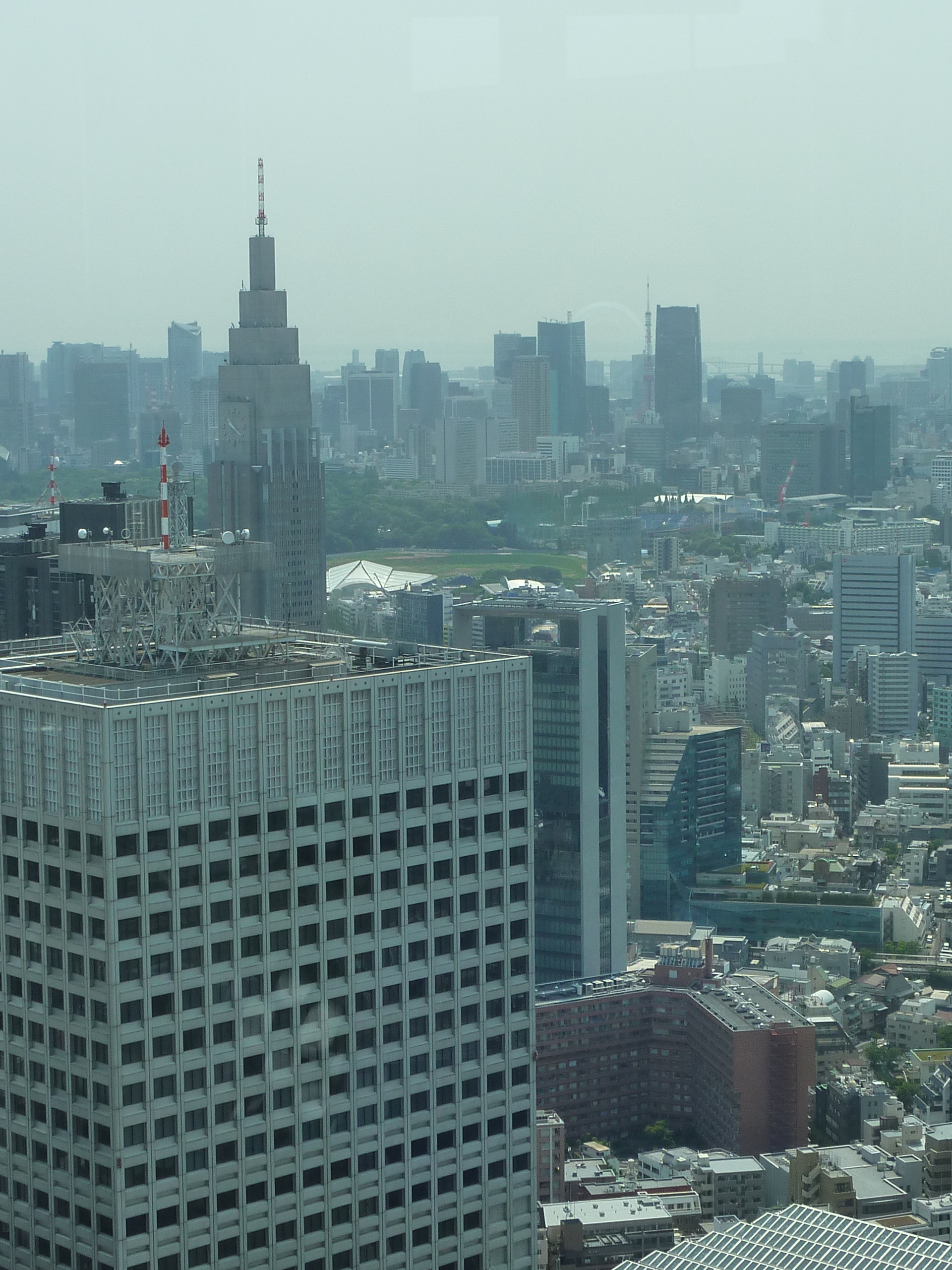 In the picture below the Tokyo Tower is in the distance.  The tallest building from this angle is called the Little Empire State Building and the big grassy area in the center is the site of the stadium for the 2020 Summer Olympics.