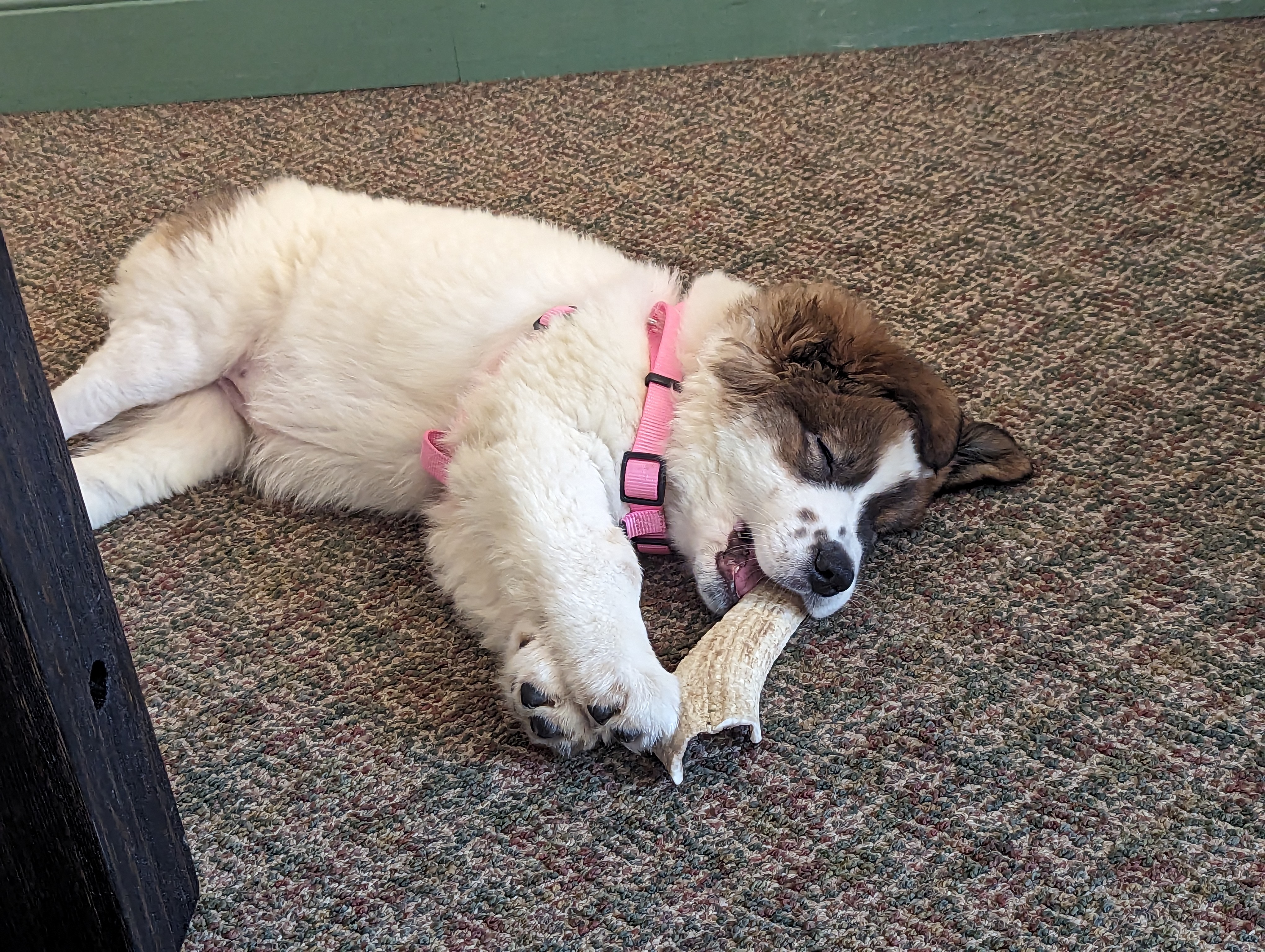 Even this little pooch LuLu was relaxing – asleep with her bone still in her mouth.