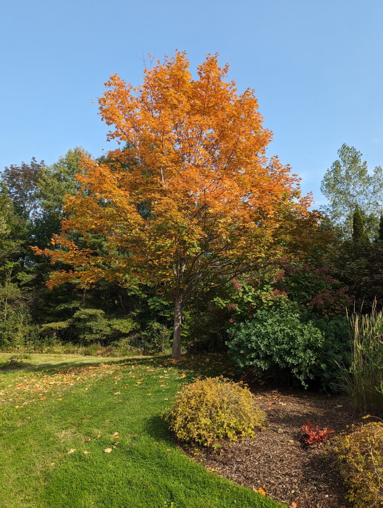 Our last day of cycling on this tour. It was a perfect day and a wonderful tour through the countryside of Vermont. We even got to see a tree filled with fall color – at last.