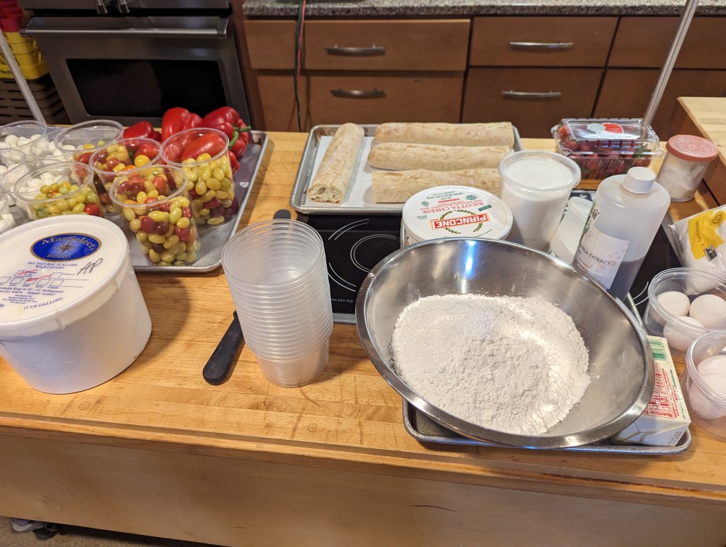 The result – our dinner: Fresh made pasta and Creamy Chicken Piccata. Plus a Charred Tomatoes with Bell Peppers and Mozzarella Salad.