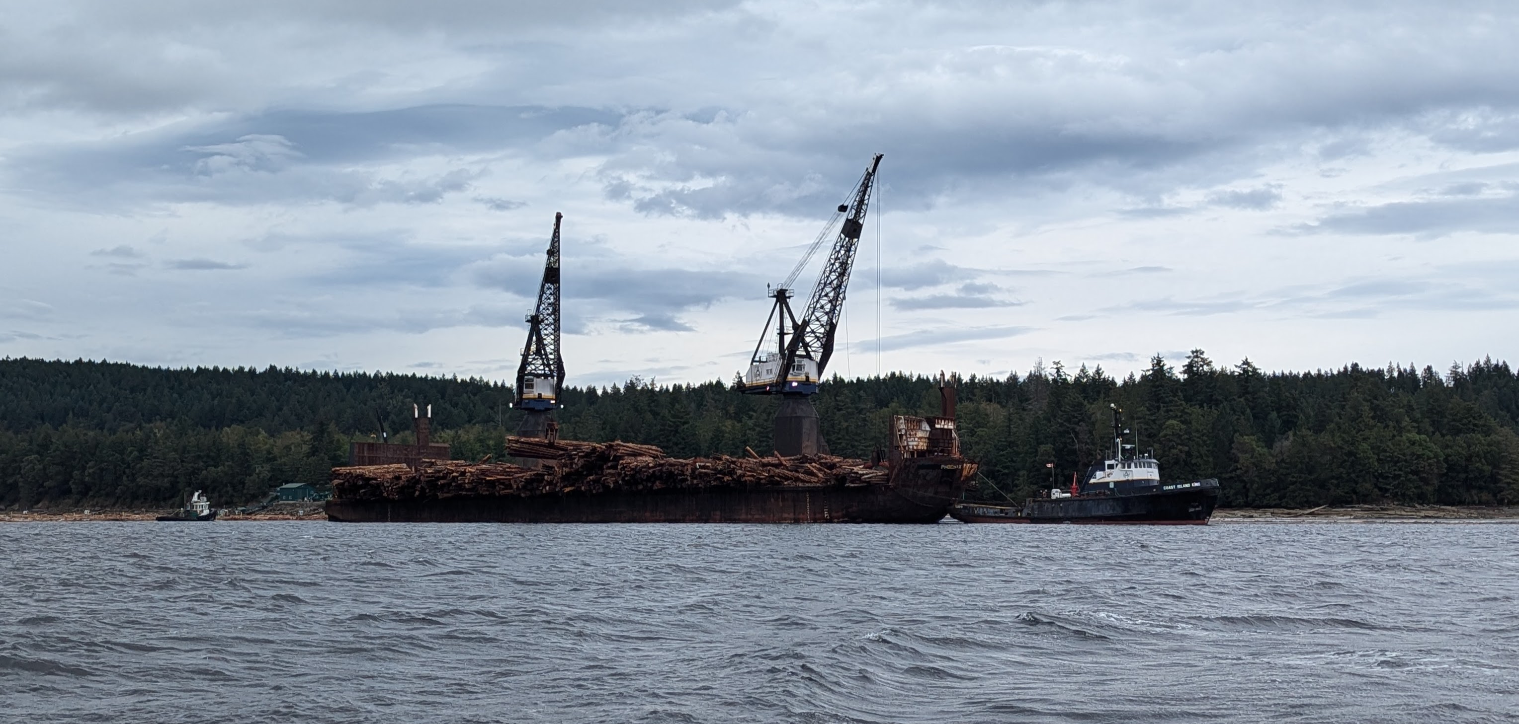 As we arrived at Oyster Bay Marina at Ladysmith we passed by this log barge. This was a common sight when we first moved to the Northwest in 1980 but is very rare now-a-days.