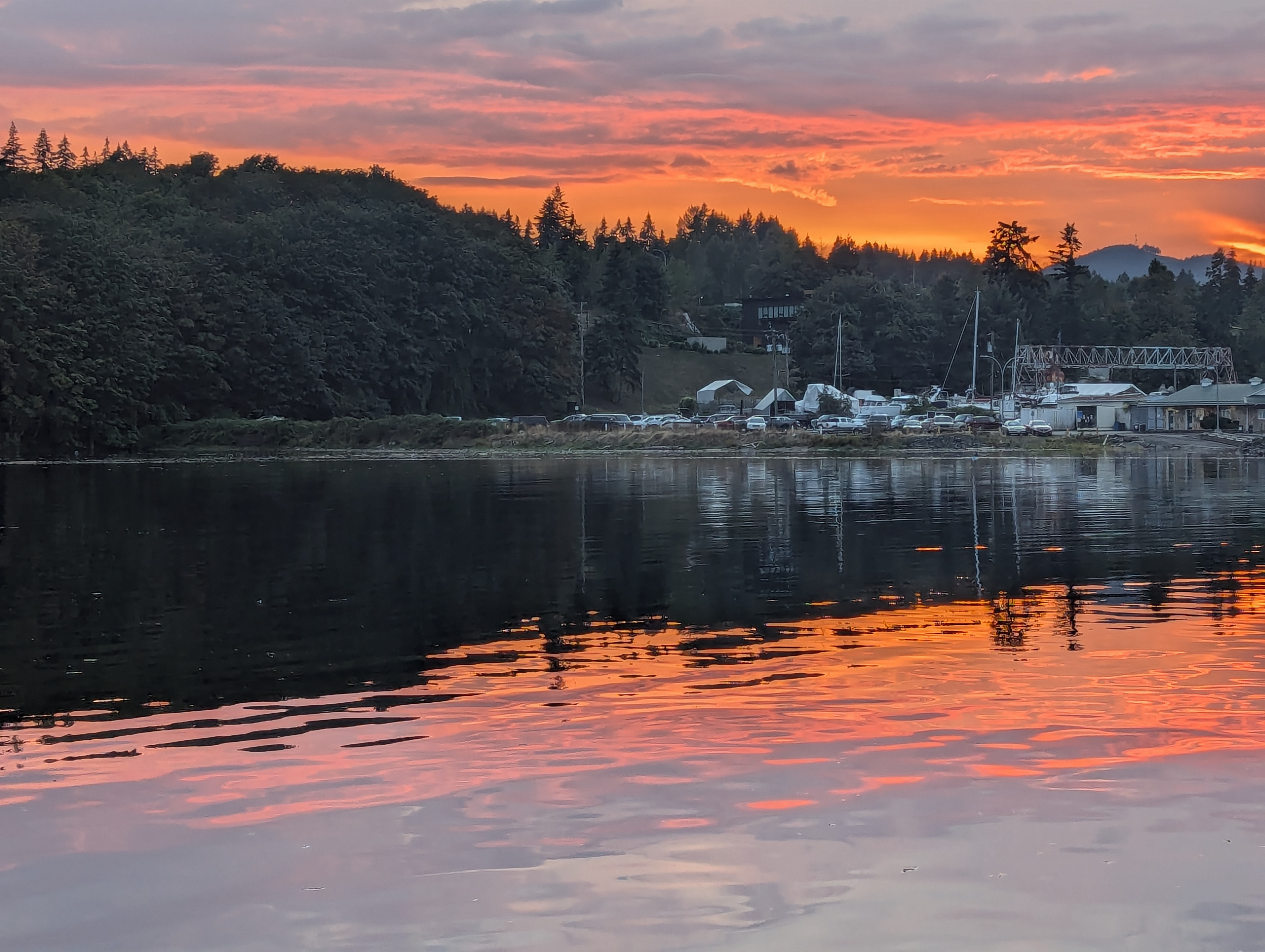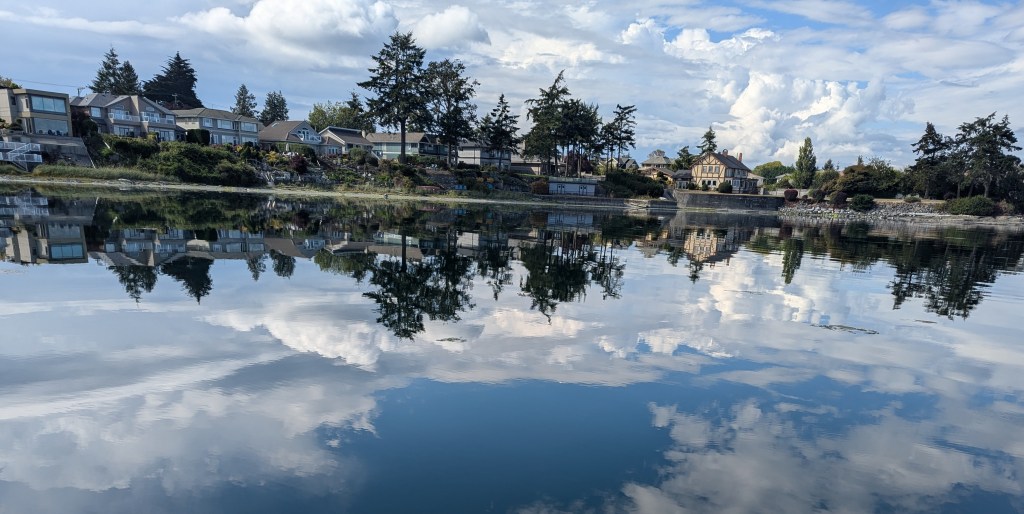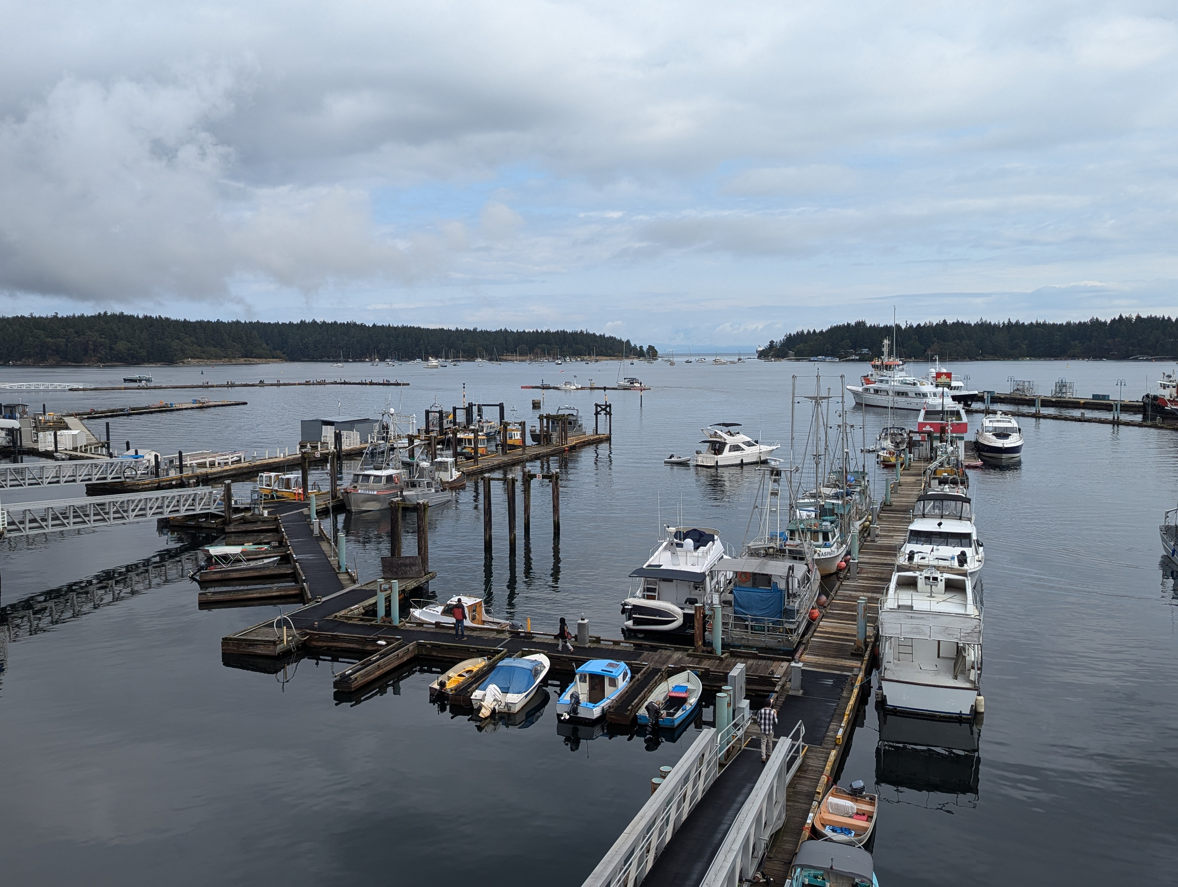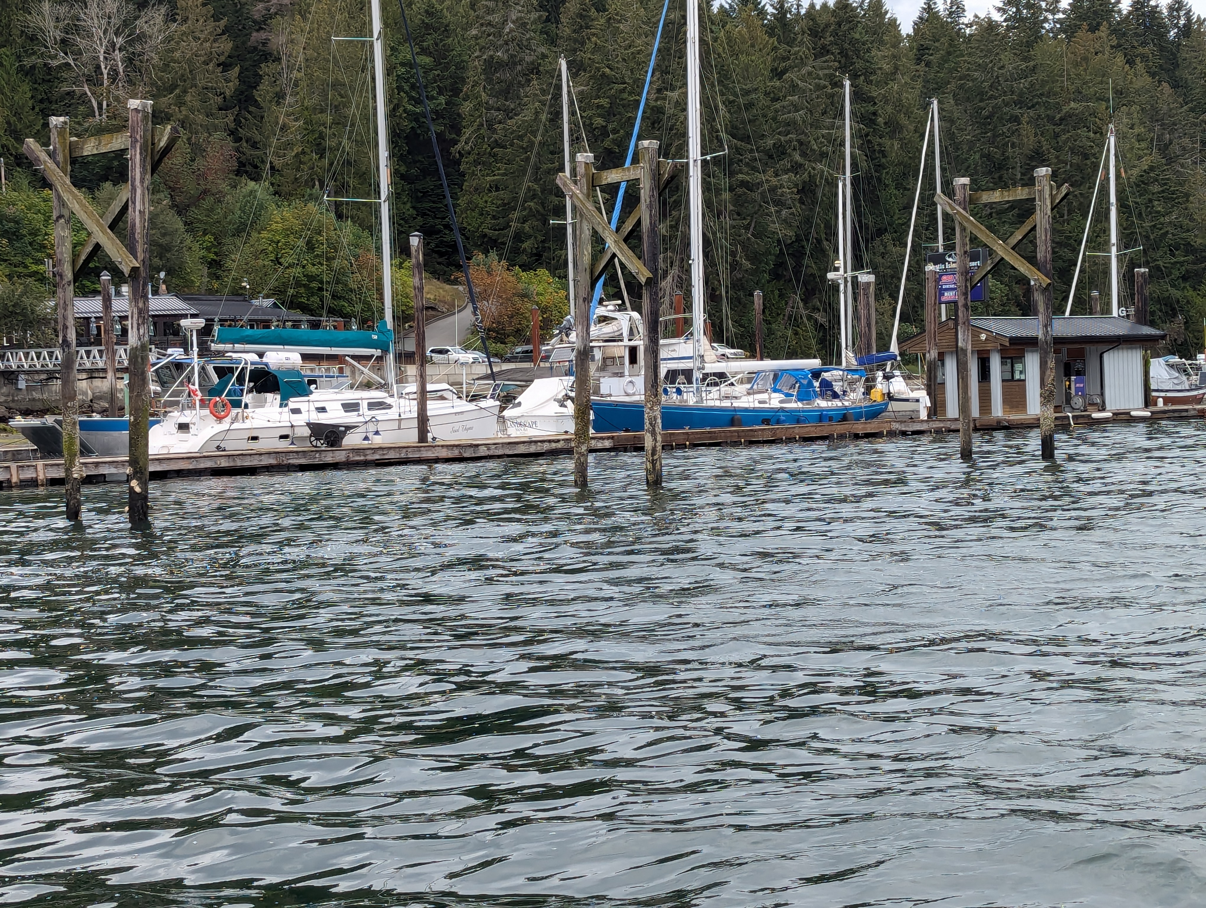 Started the day with a walk into town to Barb’s Buns Bakery for a tasty pastry and coffee. By 10 we were on our way to Ladysmith for a couple of nights. One thing that amazed me the first time I saw the Pacific Northwest in 1980 was how the trees grow right down to the water’s edge.