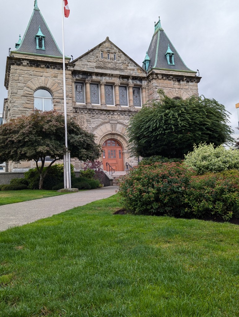 The architect, Francis Rattenbury, was the architect of the Provincial Parliament buildings in Victoria. The sandstone came from Protection Island where we are moored.