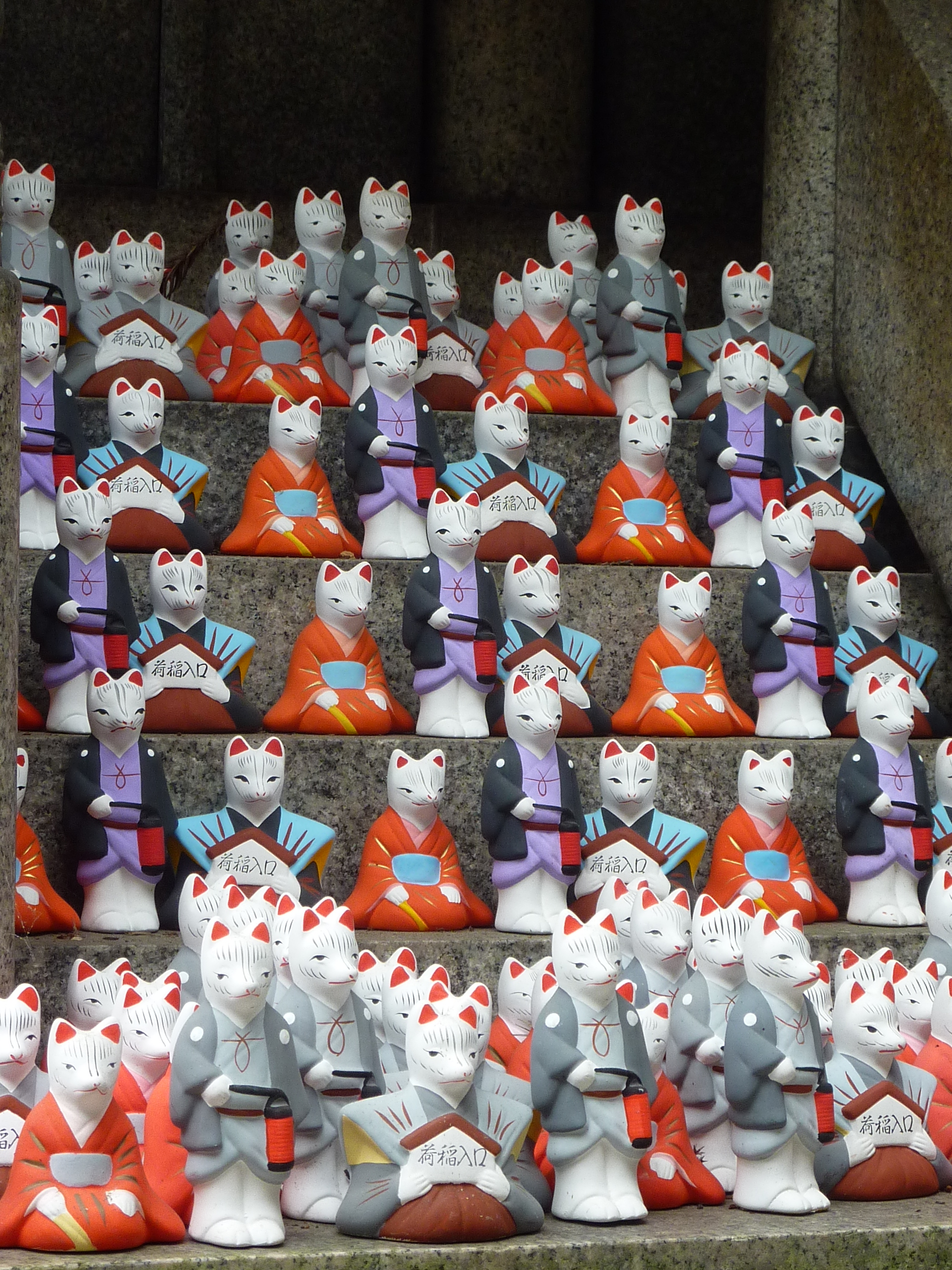 Today it was off to Arashiyama. We arrived at the Toroko Train Station where we were greeted by this friendly clan of tanuki’s. These “raccoon dogs,” more linked to wolves than dogs or raccoons, are a symbol of prosperity. (Look them up. They’re really cute.)